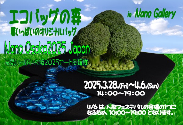 | 『エコバッグの森 + Nano Osaka2025 』 --- 夢いっぱいオリジナルバッグの展示 --- -- 元気いっぱい大阪2025アート応援隊 -- |