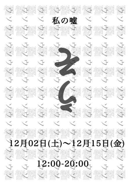 | ●開催期間 10月13日(月)~10月19日(日) ●開廊時間 14:00-19:00 (土曜,日曜12:00-17:00)