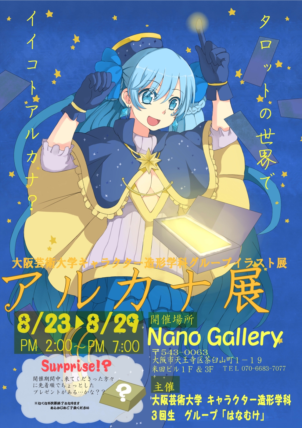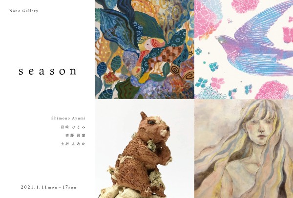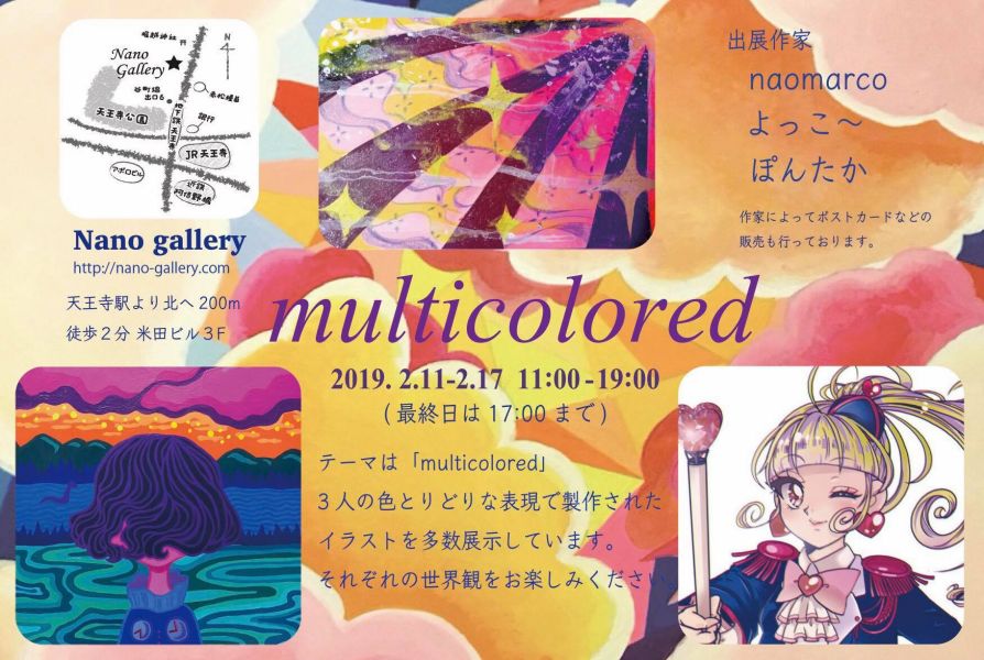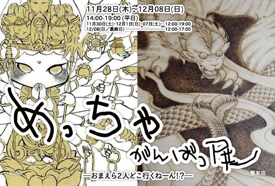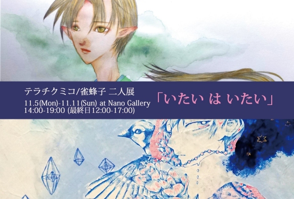 | ●開催期間 11月19日(水)~11月28日(金) ●開廊時間 14:00~19:00 ●出展作家 理々井華鈴 井ノ口 ステラ 芝﨑絵里 真星キャプテンまゆまゆ 徳平薫 テクタコウイチ 木全菜緒 龍輪樹 音喜多 歌南 まよいふき 藤森真澄 雀蜂子 ゆうき たま 徳永倫子 sato Olivia Obrecht アイカ 紙芝居屋の加瀬ひろし ゆき乃 なかやしきゆみこ mmcat/REI Nao 山路七緒 うさぎ先生@さんかくきらい y.tatsumi ●関連サイト等 facebook event |