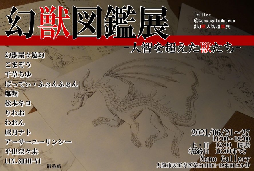 | ●テーマは「動物」。 でもちょっと…「ワケあり」な… 11人が育てた大から小の ちょっと「ワケあり」な動物たちに、 会いに来てみませんか? お肌ツルツル…でもヒゲが人一倍こゆ~い… 飼育係のアニマル餌田(38)も、 あなたの来園を心よりお待ちしてます。 ●出展作家 acco あっちょ 伊沢 あき keiko こばやしマン のなか りゅうた 福助 桝谷 総一郎 haru ヤマモト ケイタ 山本 太基 |