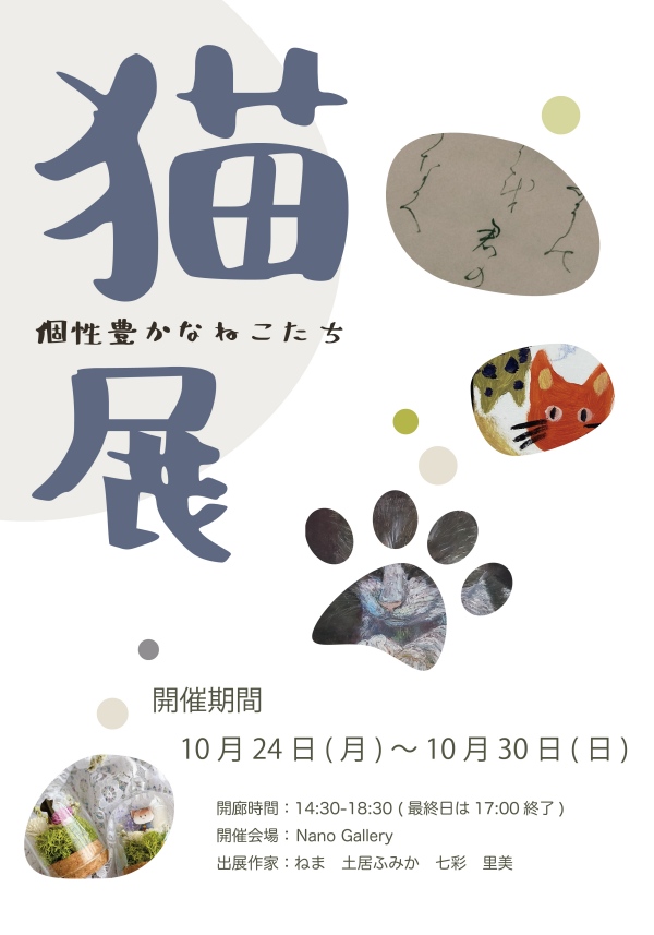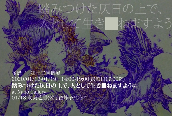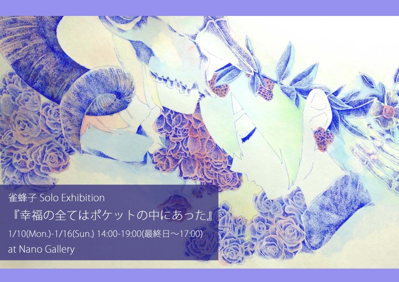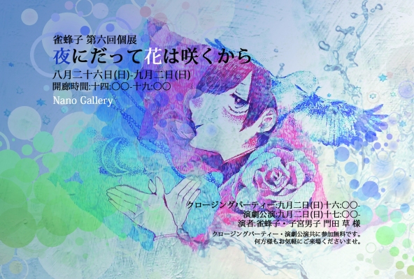 | ●開催期間 09月01日(月)~09月07日(日) ●開廊時間 14:00-19:00 (最終日17:00) ●出展作家 s.syoko ●関連サイト等 Face Book event |