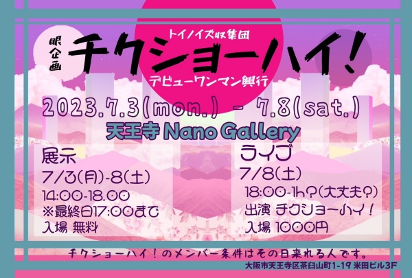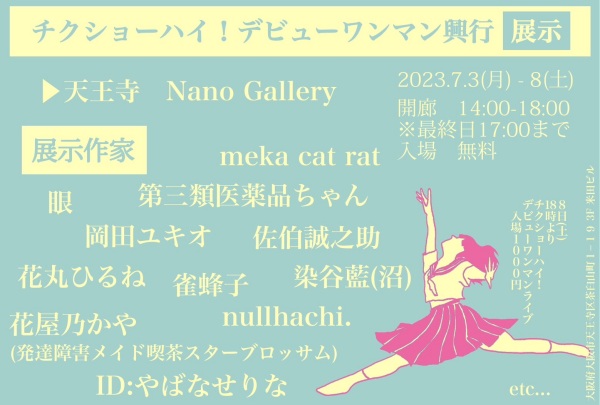 | ★Art Move2022 Nano Gallery賞 ●開催期間 05月026日(月)~06月01日(日) ●開廊時間 14:00-19:00 ●出展作家 ゆき乃 ●関連サイト等 Face Book event ゆき乃 instagram ゆき乃 x |