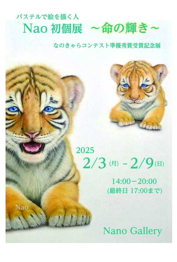 | ★なのきゃらコンテスト準優秀賞受賞記念展 ◆パステルで絵を描く人 ●開催期間 02月03日(月)~02月09日(日) ●開廊時間 14:00-20:00 ●出展作家 Nao ●関連サイト等 Face Book event |