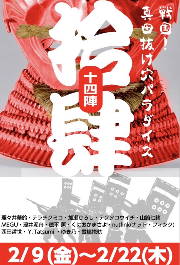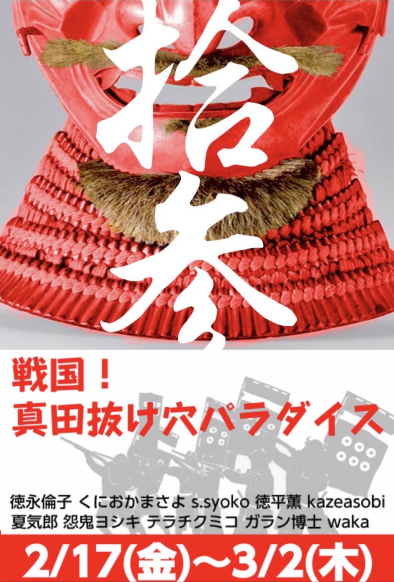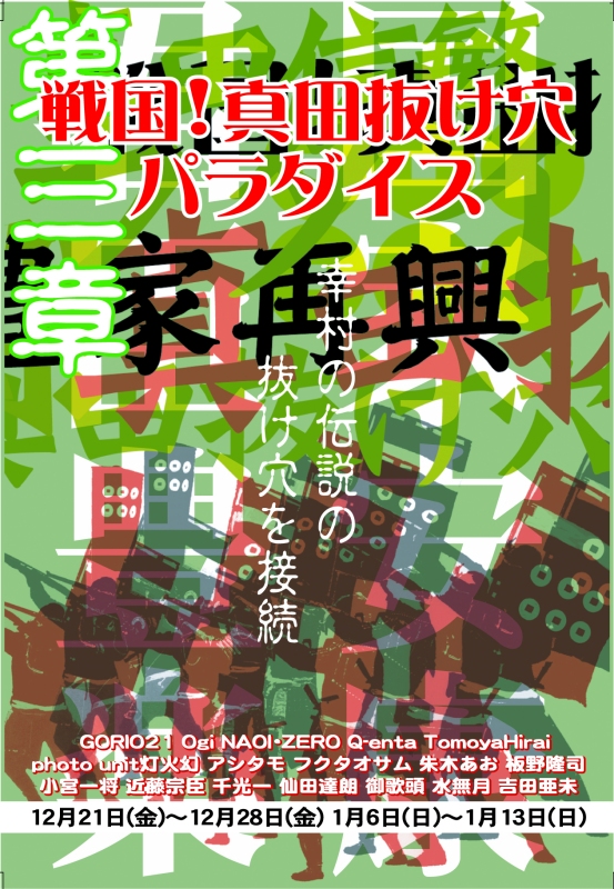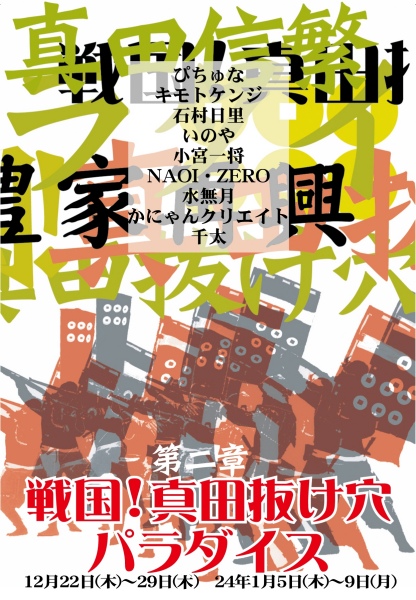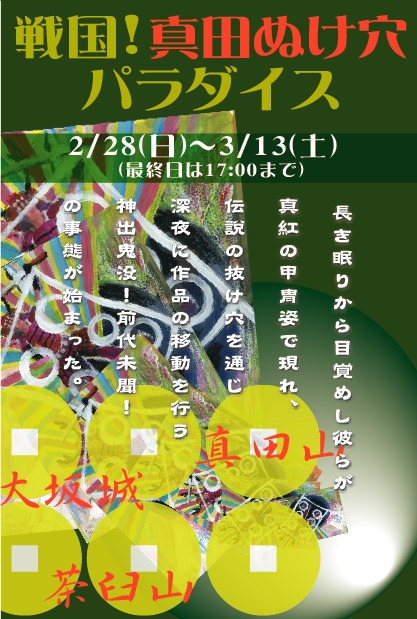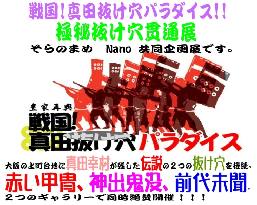 | 『戦国!真田抜け穴パラダイス!!』 ---- 極秘抜け穴貫通展 Vol.15 ---- そらのまめ Nano Gallery 共同企画 ![]()