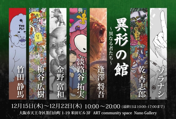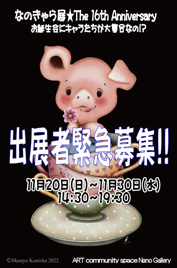 | ●出展作家 Avid 大川陽子 keisuke:KSK 塩田浩子 キモグロ派代表穂苅有香 あ~ネ Satomi. 蛇目 川瀬大樹 おおしろ晃 ぴちゅな ink0 ●募集要項(締切済み) |