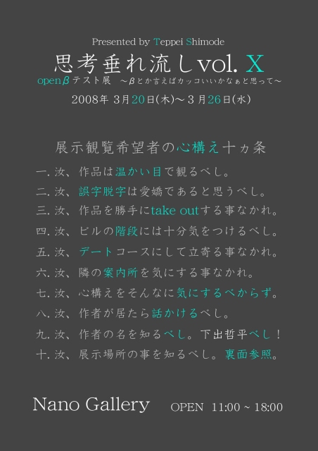 | 思考垂れ流しvol.Ⅹ openβテスト展 Presented by Teppei Shimode |
