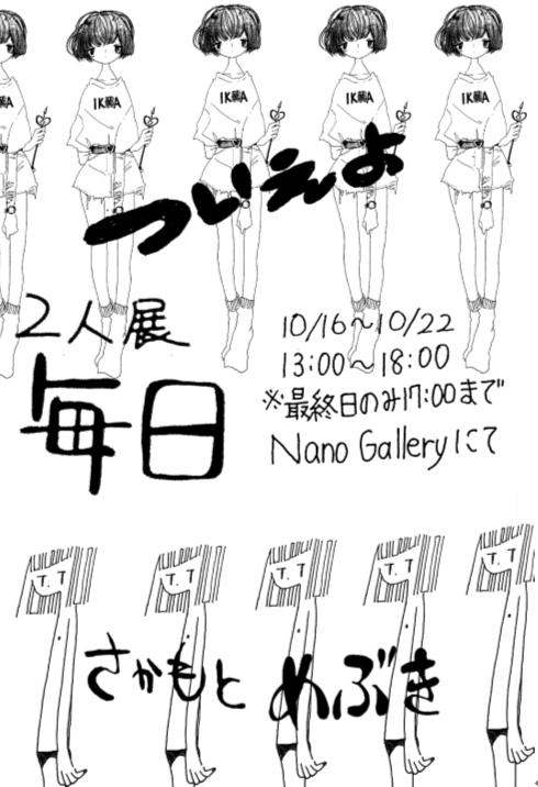 | ●出展作家 HIDEKI ぴちゅな アン・ネゴ むらやまかずさ PIKO ワカボン しまとも 内藤晶 西本美子 六車安希世 蓮井ユウリ 松本涼 |